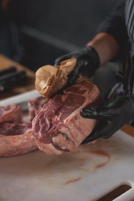 Overcooking pre-cooked prime rib can result in a dry‚ tough texture‚ while undercooking may leave it too rare or unevenly heated․ Both scenarios arise from improper temperature control or neglecting to monitor the reheating process․ Overcooking often occurs when the meat is exposed to high heat for too long‚ stripping it of natural juices․ Undercooking‚ on the other hand‚ can happen if the prime rib isn’t heated thoroughly‚ especially in thicker areas․ To avoid these issues‚ use a meat thermometer to ensure the internal temperature reaches a safe minimum of 145°F (63°C) for medium-rare․ Always follow reheating instructions carefully to achieve the perfect doneness․